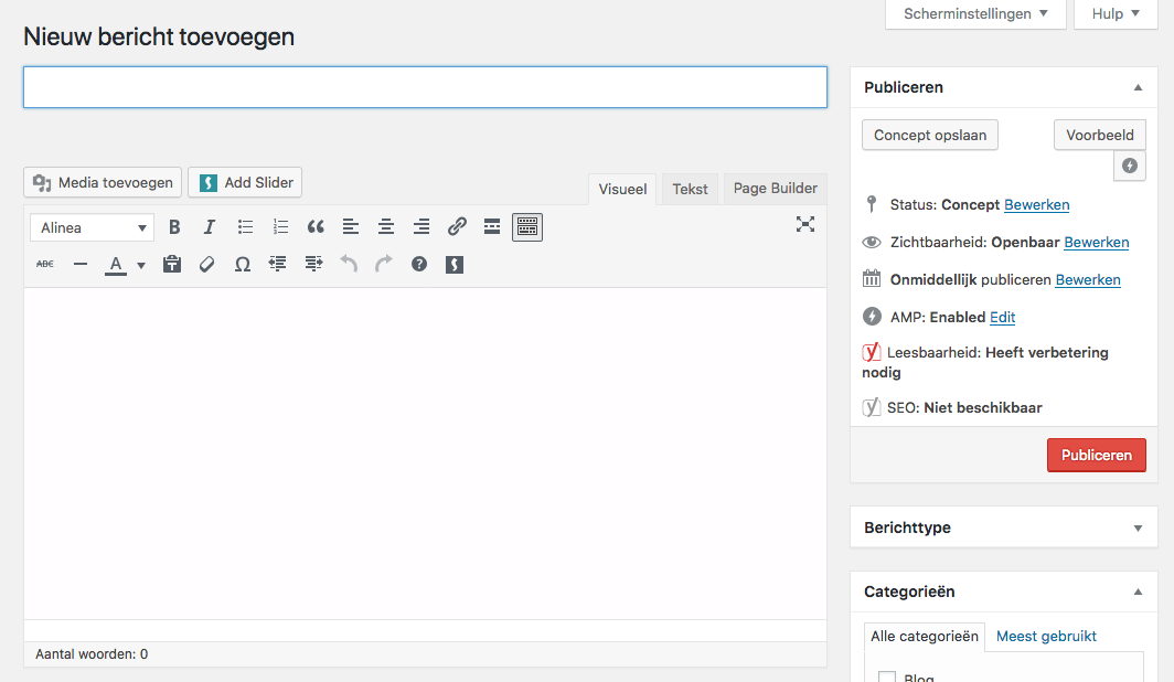 Wanneer je een nieuwe pagina of een nieuw bericht maakt dan krijg je de blokken opzet Je ziet direct dat titel, koptekst, tekst of een afbeelding kunt toevoegen. Alles gaat in een eigen blok.